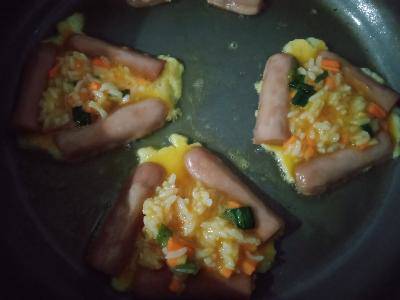 Resep untuk pancake nasi kembung buatan sendiri. Susu cair 250 ml. Pancake ini dikombinasikan dengan potongan sosis dan telur.